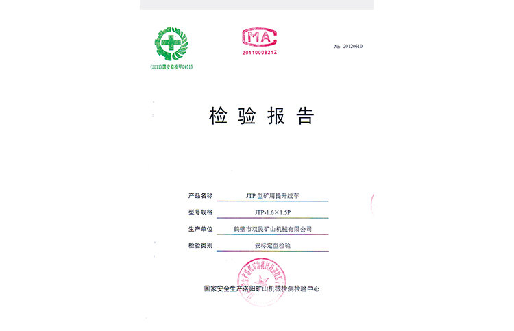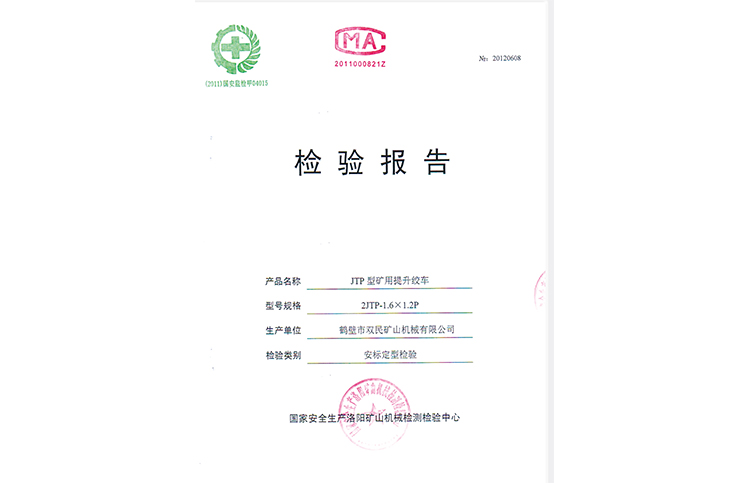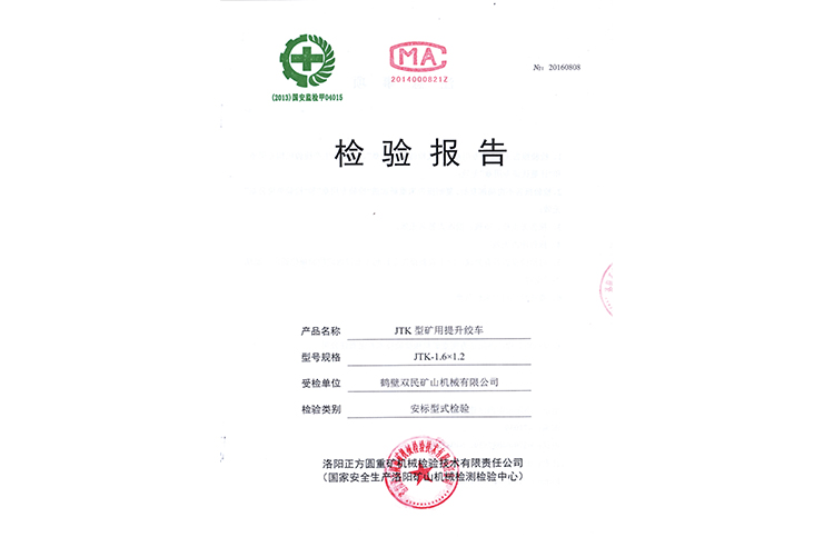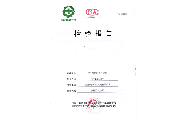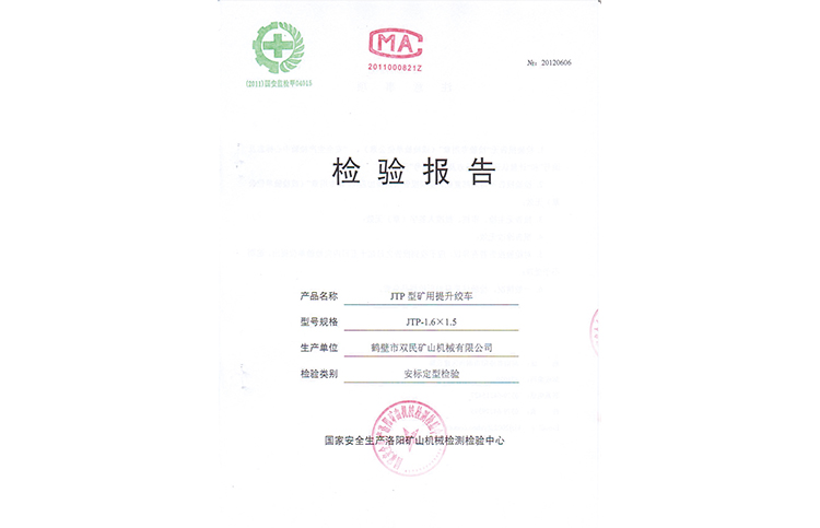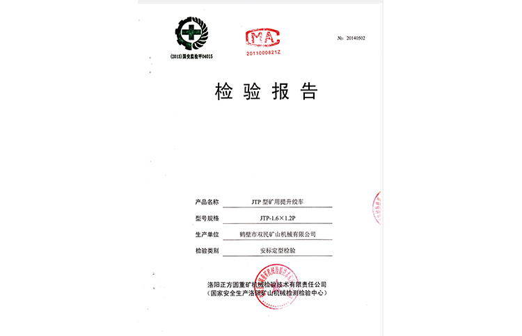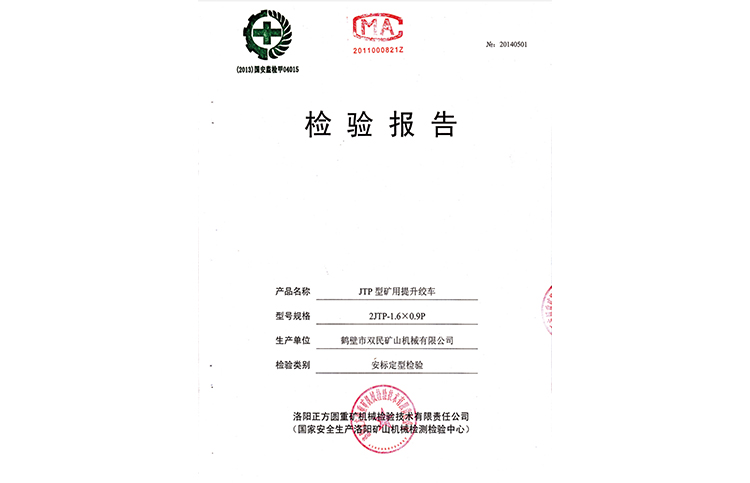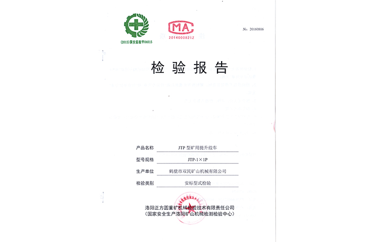 檢驗(yàn)報(bào)告JTP型礦用提升絞車(chē)